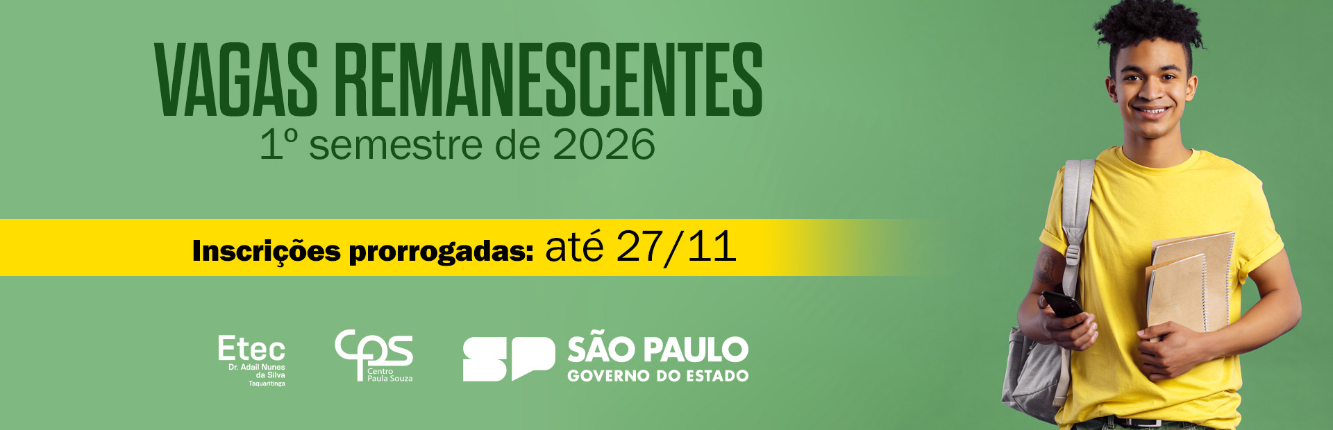 Vagas Remanescentes dos Cursos Técnicos para o 1º semestre de 2026